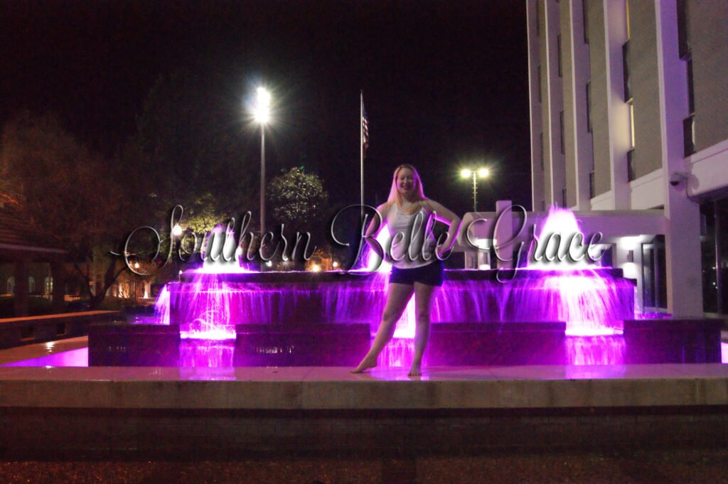 After our little pit stop to stretch our legs, we made a split decision to head to downtown Florence and have some fun with the local sites there. This included a special trip to one of the business buildings where they have a beautiful fountain out front that just happened to be lit up purple in memory of Prince. And yes I’m totally showing off how many years of ballet I took with my pointed toe.